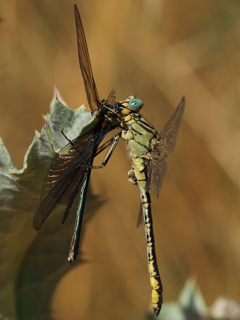 De camiño á Val d’Arán, xunto con Jose Gándara, Carmen e Ramsés Pérez, paramos a dar unha volta por Quintanilla del Agua con Alfonso Antón para poder observar algunha libeliña. Entre outras especies, como Calopteryx xanthostoma, Platycnemis acutipennis e Platycnemis latipes, tivemos a sorte de observar un macho de Gomphus simillimus comendo un Calopteryx tranquilamente mentres nós o fotografamos sen parar, e Martiño o gravaba.